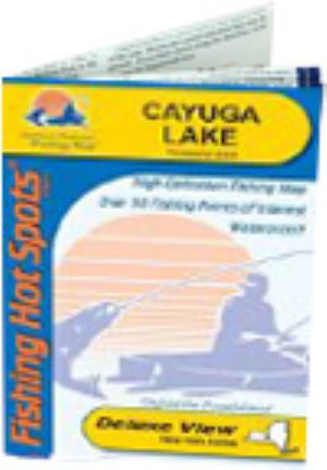 Cayuga Lake, New York Waterproof Map (Fishing Hot Spots)Second largest of the Finger Lakes. Outstanding year-round fishery for both coldwater and warmwater species. One of the state's best for lake trout and landlocked salmon. Largemouth and smallmouth bass also available. These new S-Series maps feature GPS-Marked Fishing Areas, shaded contours, and enhanced graphics. This map features Shaded Depth Contours, GPS Coordinates for Marked Fishing Areas and enhanced species information (including color pictures). It also highlights underwater structures and boat ramps, and includes a lake profile, fishery information, tips and techniques, and the best digitally-produced cartography on the market. This series is the new Gold Standard in fishing maps and is available for select New York lakes. Size - 24 X 36